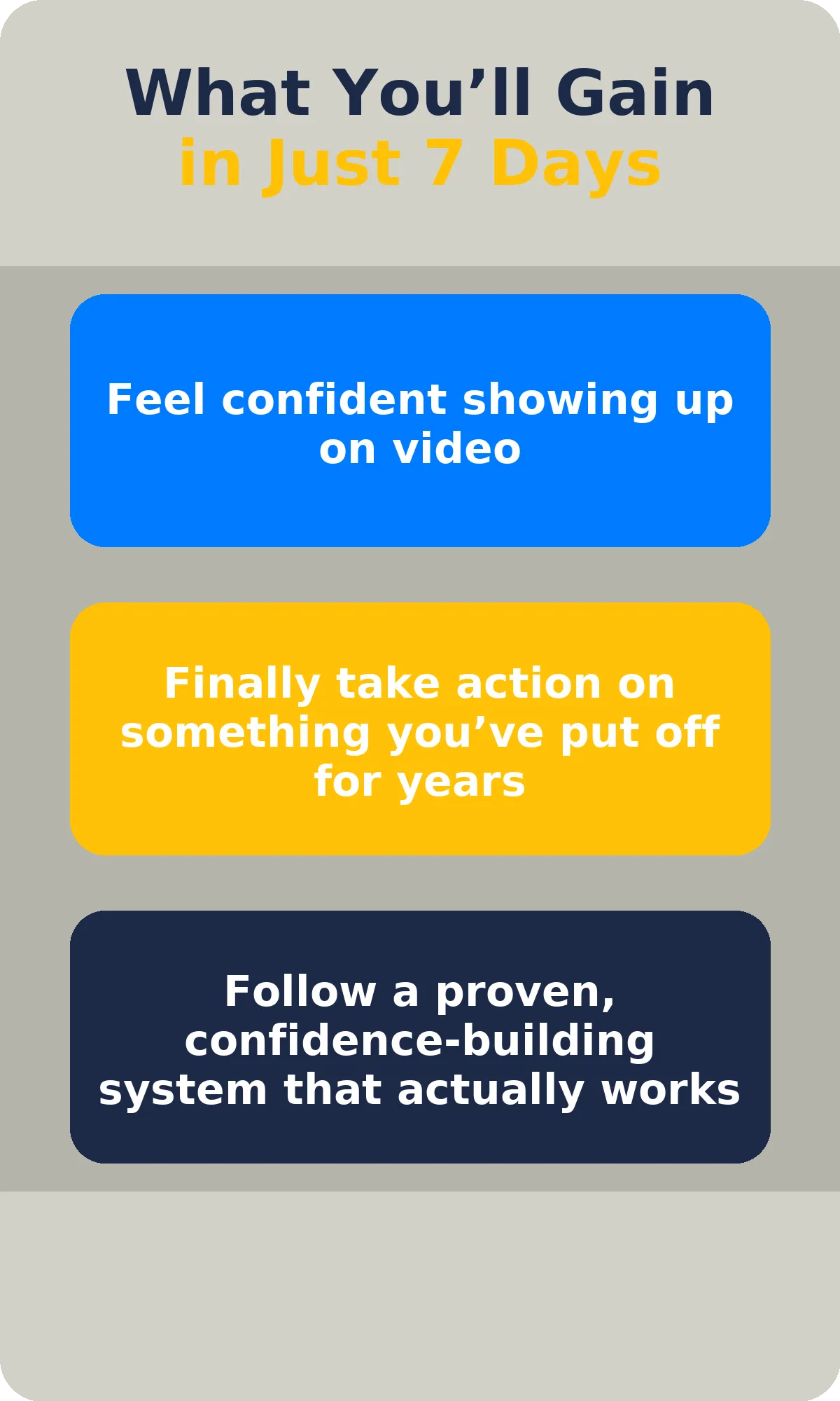 Benefit: Build your on-camera skills step by step with no guessing, just daily momentum.